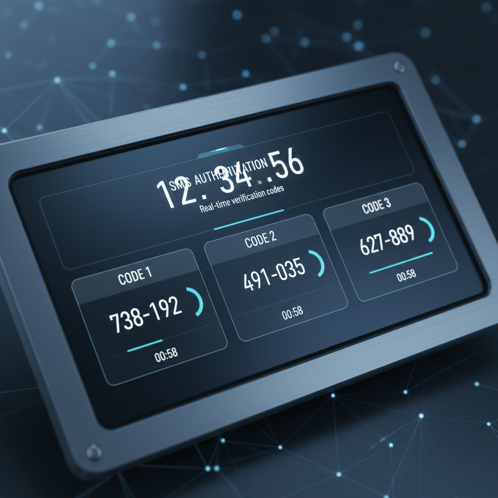 Dashboard interface showing SMS authentication codes in real-time with clean modern design